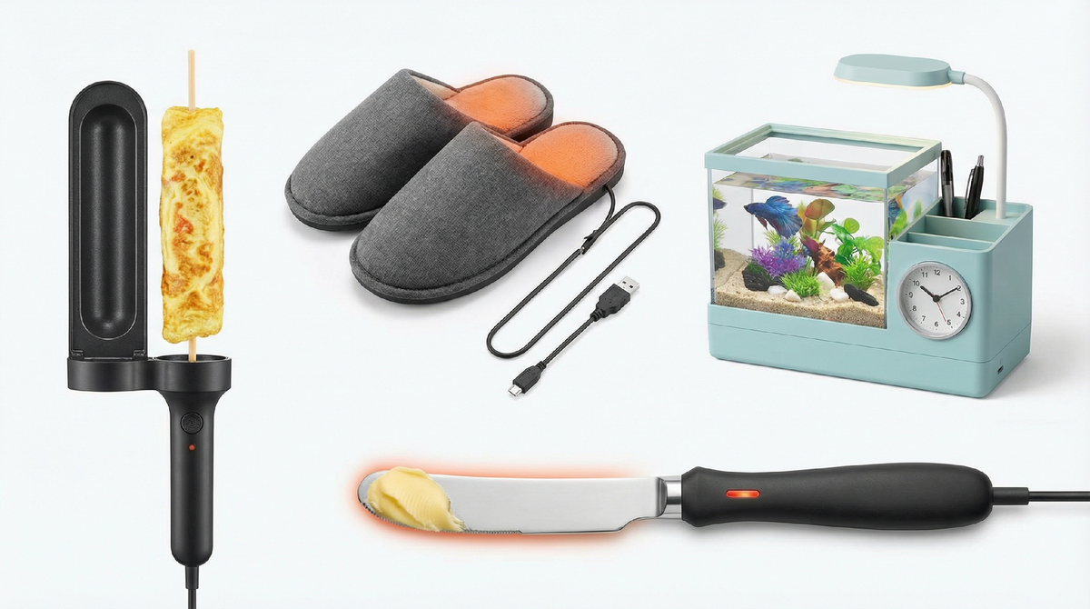 Омлетница на палочке, тапочки с USB, аквариум-органайзер, нож с подогревом — всё это реально существует. И работает.