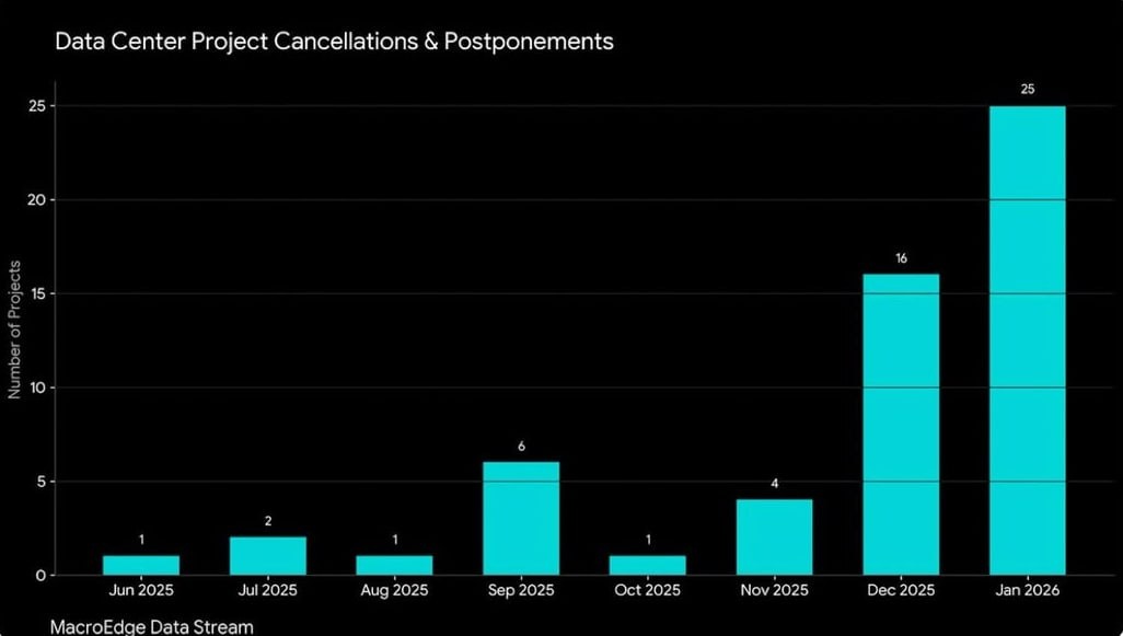 ИИ-сектора. Речь идет не о падении спроса на искусственный интеллект, а о резком росте сопротивления на местах. В 2025 году число отмен выросло в разы, а в начале 2026 года процесс ускорился. За год количество отмен и переносов увеличилось примерно в четыре раза. Заблокированы или отложены проекты на десятки миллиардов долларов и несколько гигаватт будущего энергопотребления. Около 40 процентов крупных спорных проектов в итоге не доходят до реализации. Ключевая причина — инфраструктурная нагрузка. Дата-центры требуют огромных объемов электроэнергии и воды, усиливают нагрузку на сети, повышают риски роста тарифов и отключений. Шум, экологические риски, застройка пригородов и слабый эффект для занятости усиливают негативное отношение местных сообществ. В результате дата-центры стали политически токсичной темой. Консерваторы критикуют перегрузку сетей и субсидии, либералы — экологию и ресурсы. Для ИИ-сектора это сигнал: его рост упирается не только в модели и инвестиции, но и в физичес