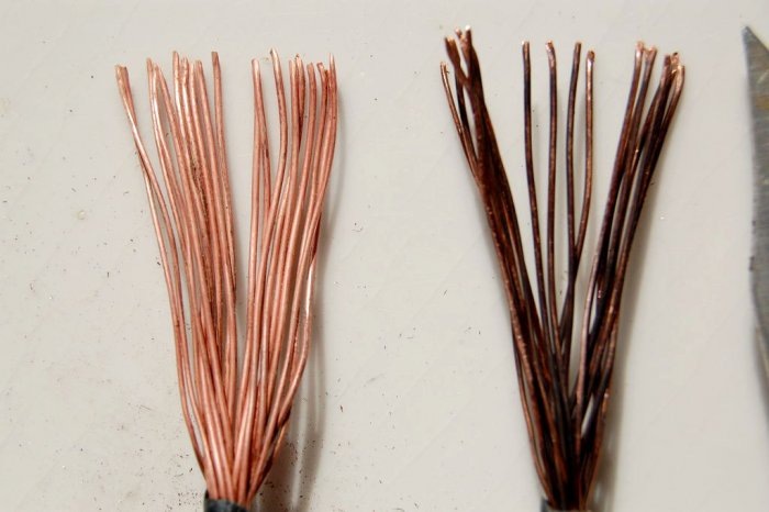 Практическое руководство для радиолюбителей и всех, кто сталкивался с проблемой пайки окисленных медных проводов. Этот метод также будет полезен автомобилистам. Основные преимущества: оперативность, экономичность и доступность для всех. Традиционно для очистки проводов перед пайкой используются механический метод (удаление окислов ножом) и термический (нагрев на открытом огне). Однако эти способы не всегда эффективны, особенно для многожильных проводов. Альтернативой может стать химический метод очистки меди и её сплавов от естественного окисления, которое возникает при длительном хранении. Точные пропорции не важны, все ингредиенты смешиваются на глаз: Все эти компоненты можно легко найти в любом доме, даже если вы не особо опытный кулинар. Также потребуется посуда для смешивания. Я использовал две пробирки, но вы можете взять любую стеклянную или керамическую емкость. В крайнем случае подойдут пластиковые одноразовые стаканчики. В одну пробирку нужно насыпать половину чайной ложки со