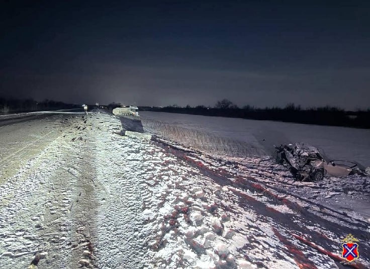 По предварительной информации регионального управления МВД, водитель автомобиля Mitsubishi потерял управление и выехал на полосу встречного движения. Волгоградская область, 5 февраля 2026 / «Волга-Медиа.ру»/. Трагическое дорожно-транспортное происшествие со смертельным исходом зафиксировано в ночь на 4 февраля на 881-м км федеральной трассы Р-22 «Каспий». На встречной полосе произошло столкновение с грузовым автомобилем FaW, двигавшимся в противоположном направлении. В результате аварии в Иловлинском районе Волгоградской области водитель легкового автомобиля получил травмы, несовместимые с жизнью, и скончался на месте происшествия до прибытия медицинских бригад. Фото: ГУ МВД России по Волгоградской области.