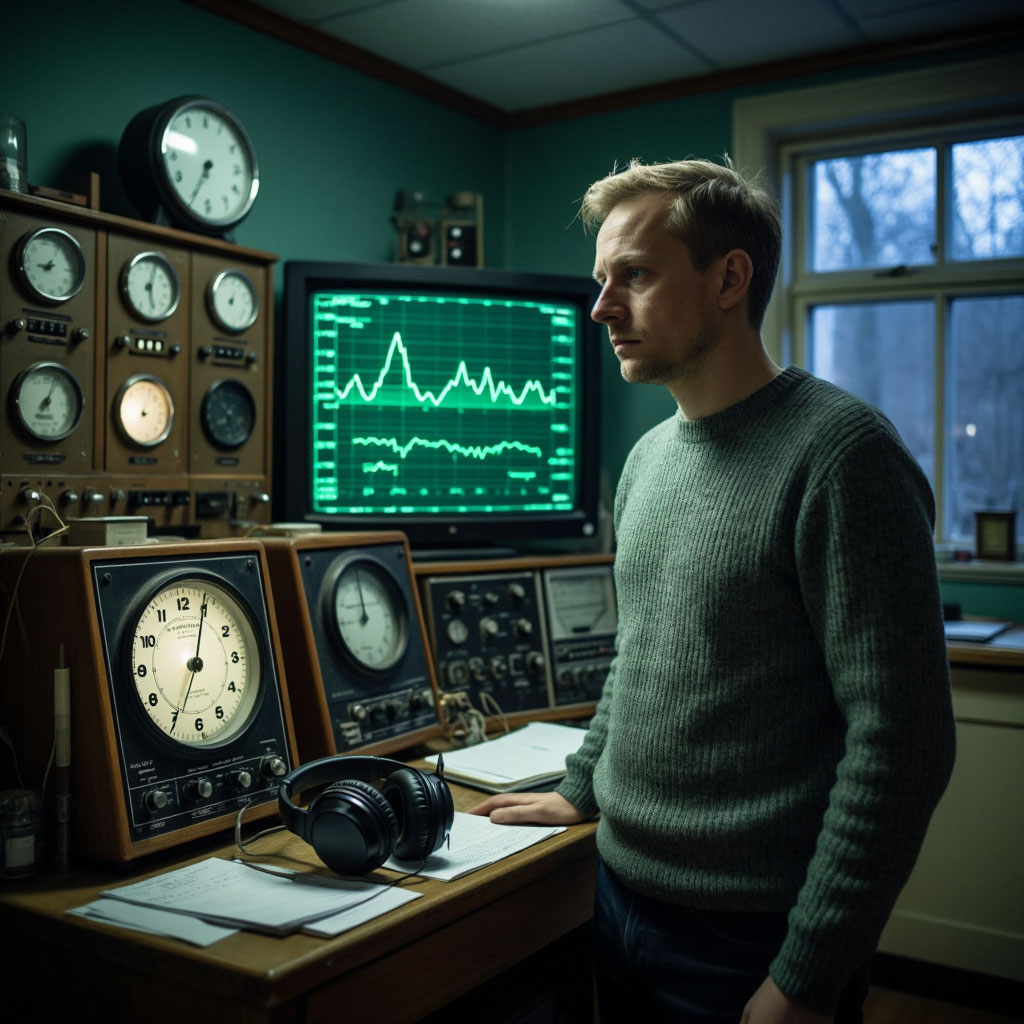 Всё началось с радиопомех. На частотах, которые десятилетиями использовались для передачи метеоданных, появился странный сигнал — не шум, а упорядоченная последовательность импульсов, напоминающая двоичный код, но с дополнительным, третьим состоянием, которого не должно существовать в земной цифровой логике. Эйнар сначала подумал о неисправности оборудования, проверил всё, перезагрузил системы. Сигнал не исчез. Более того, он усиливался в определённые часы — всегда между 2:17 и 2:43 ночи. Метеоролог начал записывать эти последовательности, пытаясь расшифровать их как обычный код. Безуспешно. Тогда он подключил сигнал к звуковому преобразователю, и из динамиков полилась... музыка. Если это можно было назвать музыкой. Звуки напоминали пение китов, переплетённое с металлическим скрежетом и чем-то вроде детского лепета, но на неизвестном языке. Эйнар почувствовал холодный пот на спине. Он был один на станции, ближайший населённый пункт — в восьмидесяти километрах.