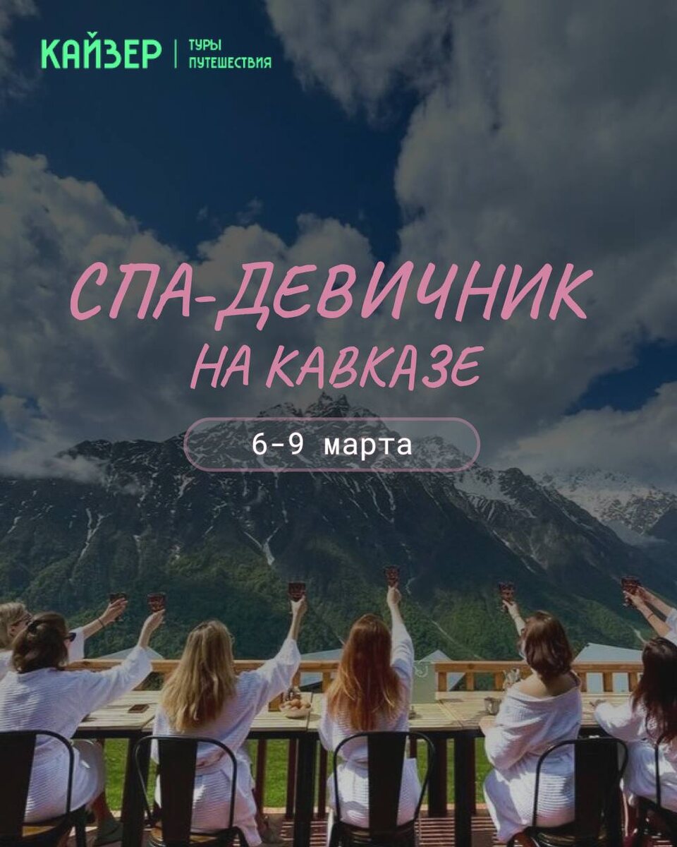! Так как больший процент моих путешественников - это девушки, в этом году решил впервые сделать путешествие-девичник на мартовские праздники! ⚡️🍓 В 4 дня путешествия я постарался вместить по максимуму! Мы познакомимся с красивейшими местами КМВ и Северной Осетии! Будет несколько мастер классов и полный релакс в спа среди гор! 🧖♀️🏔️ 📆6-9 марта 🙎♀️8 мест 💳 54 900₽ что включено: - проживание - трансферы по программе - завтраки, велком дринки - сопровождение гидов - художница - таролог - экскурсия в Кармадонское ущелье - экскурсия в Дигорию - баня - итальянские термы - конная прогулка - экскурсия по Владикавказу с гидом Программа: https://kaizertravel.ru/girlstrip За подробностями пишите @kaizermark