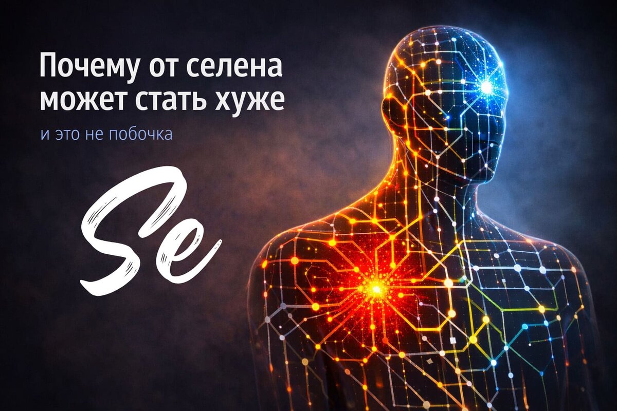 Селен — не «добавка». Это элемент тонкой настройки. Современная нутриционная биохимия рассматривает селен именно как регулятор системной устойчивости, а не как универсальный нутриент — этот подход доминирует в обзорах Nature Reviews Endocrinology. Он не про «поддержать на всякий случай», а про распределение ресурсов, границы воспаления, выживание тканей и приоритеты организма. И если приоритеты сейчас — выживание, компенсация, стресс, удержание системы на ходу, то селен будет работать не так, как хочется вам, а так, как выгодно вашему организму. Иногда эффект возникает в другой зоне — совсем не там, где вы ждали.