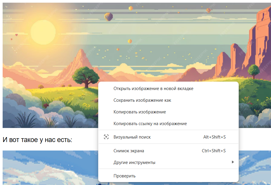 Всем привет. Сегодня мы сделаем меню, которое будет открываться по нажатию правой кнопки мыши на сайте через JavaScript. Это называется контекстное меню. Когда вы в браузере кликаете правой кнопкой мыши по элементу, у вас открывается меню с определённым набором функций. Например, в Microsoft Edge открывается такое: Бывают случаи, когда нужно поменять поведение контекстного меню или его содержимое. Например, нужно убрать его полностью или сделать меню с определёнными пунктами при нажатии на элемент. Например, вы разрабатываете админ-панель или какой-нибудь онлайн редактор, это может быть редактор текста, редактор фото или что-то другое. Нужно сделать так, чтобы при нажатии на элемент открывалось меню с определёнными функциями. Например, онлайн редактор сайтов Wix. При нажатии на элемент ПКМ открывается меню, это этот элемент можно скопировать, дублировать, удалить, анимировать или получить по нему какую-либо справку, что достаточно удобно. Поведение обычного контекстного меню заложено
