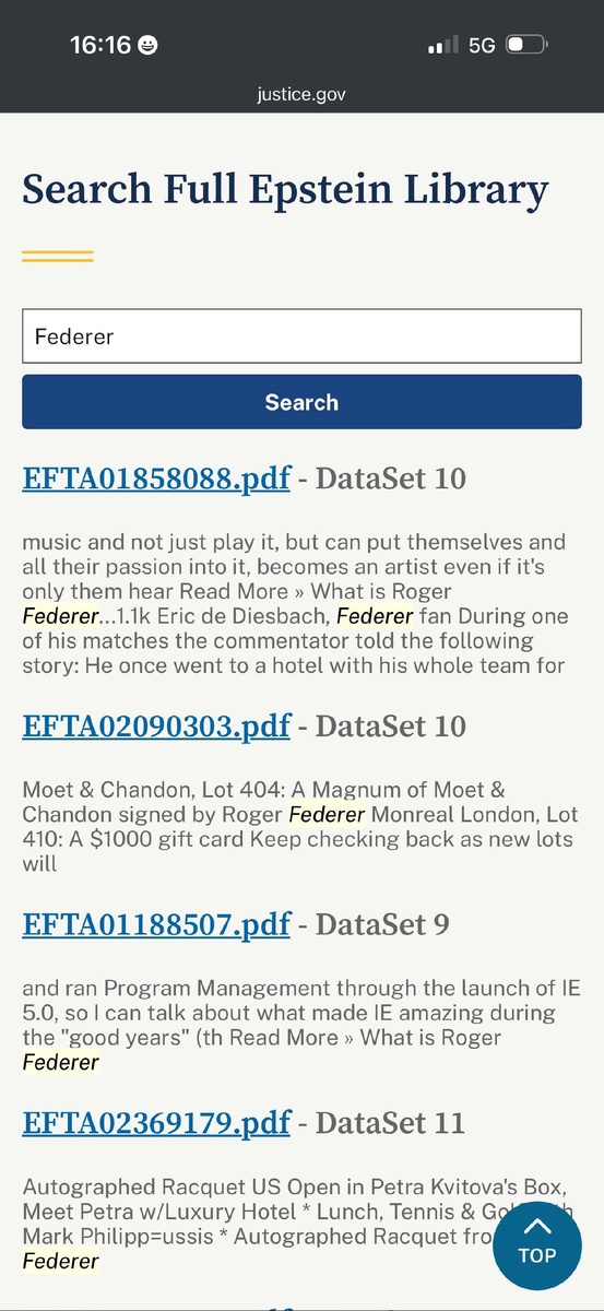 🤔 Кажется, кто-то искал Роджера Федерера в архивах Эпштейна.