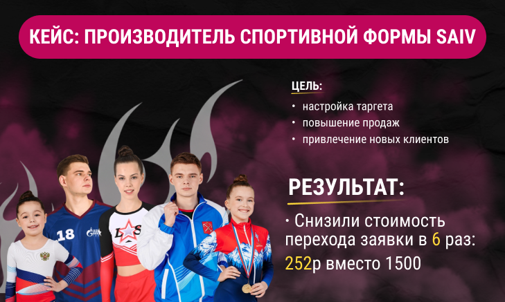 Кейс: Снизили стоимость заявки в 6 раз — с 1500₽ до 252₽для производителя спортивной формы SAIV