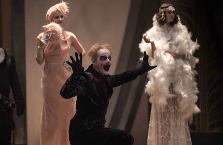Одним из ключевых эпизодов является сеанс черной магии в Варьете, задуманный Воландом, который хочет проверить, изменилось ли московское общество. Свита начинает демонстрировать москвичам различные фантастические трюки, которые при столкновении с реальностью обнажают скрытые человеческие пороки. Сначала Коровьев демонстрирует фокус с колодой карт, поражая зрителей ловкостью, а затем он сообщает, что одна карта находится у гражданина по фамилии Парчевский между купюрой и судебной повесткой по делу об алиментах. Разоблачение показывает неблаговидную сущность персонажа, а дополняет это комментарий Коровьего о том, что Парчевский еще и склонен к азартным играм.