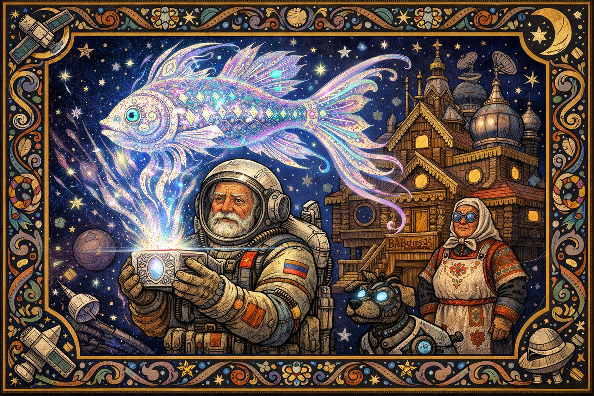 — Нейросеть?! — закричала бабка Люся. — А я второй сезон «Галактических страстей» скачать не могу, антенна у нас старая! Скажи своей рыбёшке, чтобы антенну новую дала! Лазерную! С поддержкой межпланетного стриминга!