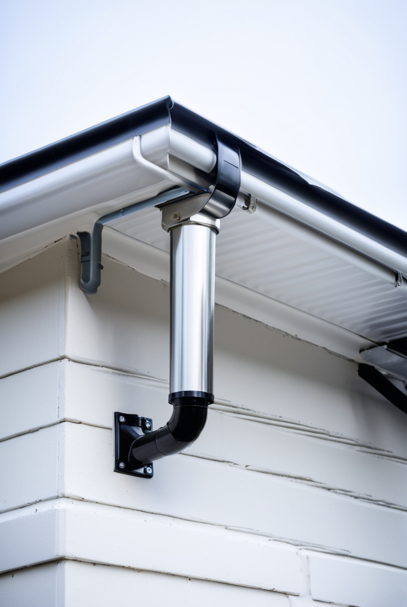- Выбор и комплектующие для водосточной системы: пластиковый (ПВХ) или металлический водосток для частного дома