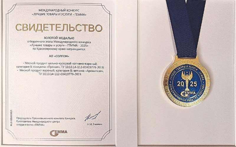 🔻АО "Солгон" стало победителем отборочного этапа международного конкурса «ГЕММА», подтвердив высокий уровень качества продукции "Провинция