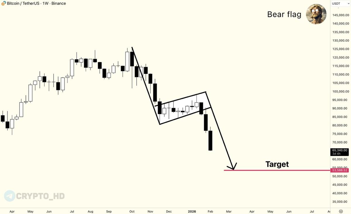 🐻 Еще один медвежий график из Twitter с таргетом ~$53,500 за BTC.