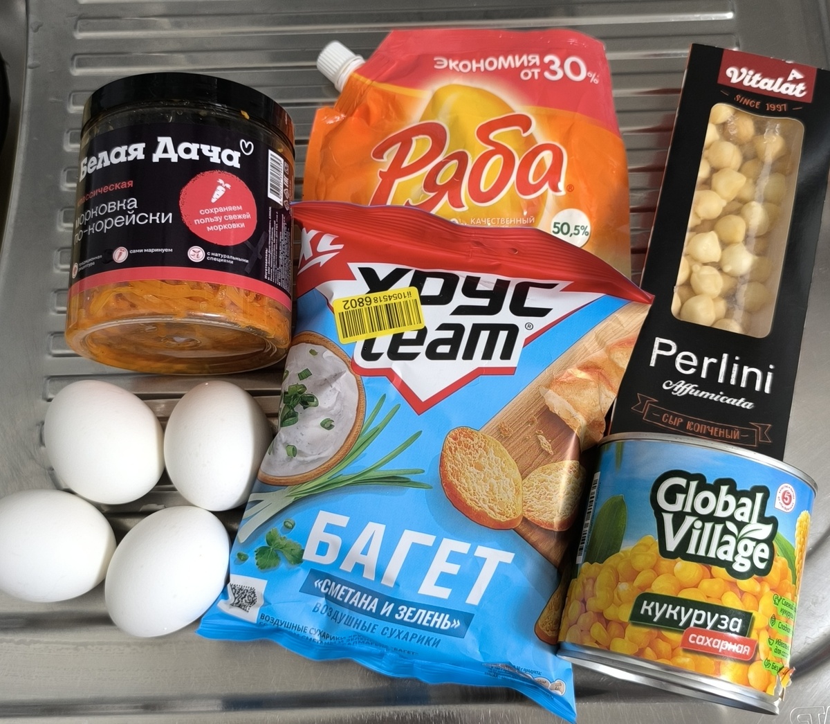 Устали от скучных салатов? Хотите удивить гостей чем‑то необычным, но без сложных ингредиентов и долгой готовки? Представляю вам салат "Косичка в гостях" - блюдо, которое сочетает нежность яичной основы, пикантность корейской моркови, хруст сухариков и копченость сыра. Все это создаёт неповторимый вкусовой букет.