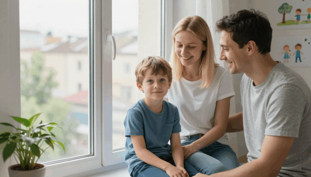 Вечером вся семья собралась в гостиной. Дмитрий включил мультфильм для Кати. Максим сидел рядом с ним на диване, Ольга — с другой стороны.