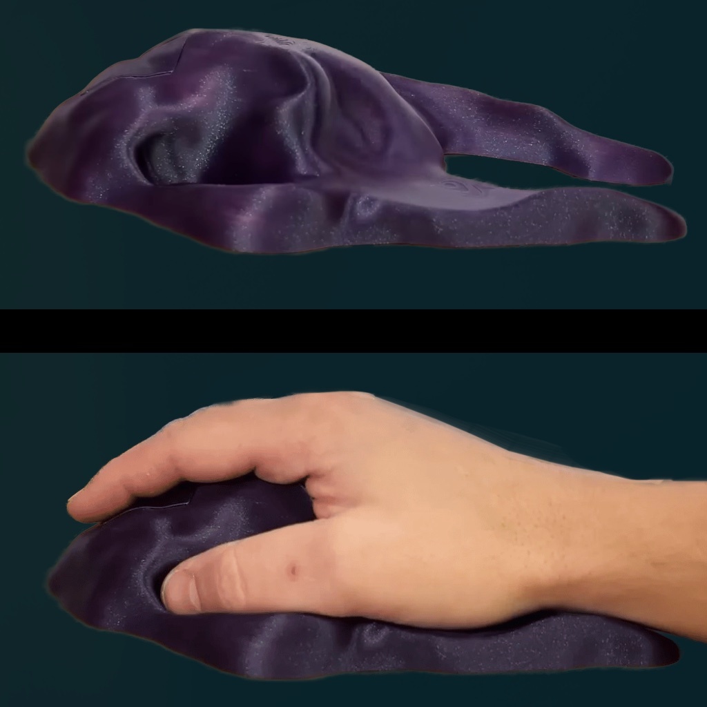 Поиски идеальной компьютерной мыши продолжаются. Очередную попытку совершил автор канала Play Conveyor: он решил, что истинный комфорт возможен только если сделать мышку вручную и полностью подстроить под свою кисть. Результатом стала представленная им «самая удобная мышь в мире» с довольно специфическим, если не сказать больше, внешним видом. Для её создания не понадобились сложные вычисления и чертежи. Автор просто сжал в кулаке кусок модельной глины, получив естественный слепок расслабленной кисти. Затем этот комок был оцифрован с помощью айфона и фотограмметрии, немного доработан в редакторе и распечатан на 3D-принтере. Внутрь поместили начинку из стандартной мышки: плату, сенсор и кнопки. На выходе получился монстр. Рука лежит в новой мышке как влитая, но только в одной-единственной позе. Любая попытка сменить хват или слегка сдвинуть пальцы встречает сопротивление рельефа. Кнопки и колесико пришлось врезать туда, где их быть не должно, что убило тактильность, а сама форма оказала