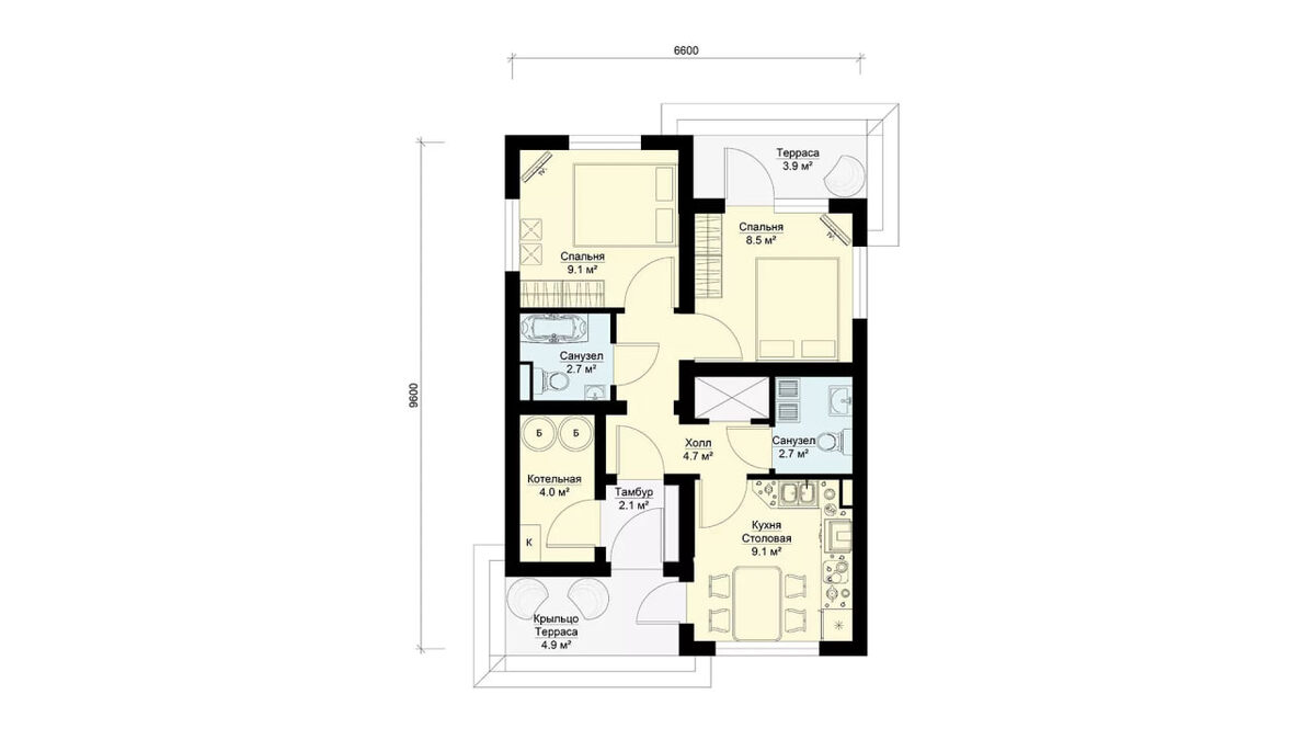 🏡 Представляем наш проект — дом БП-54/1! Проект БП-54/1 — это уютный одноэтажный дом 6х9 метров с двумя спальнями и плоской крышей, общей площадью 54 кв. метра. В планировку входят кухня-столовая, 2 спальни, 2 санузла и котельная. Из одной из спален есть выход на террасу, а кухня-столовая имеет отдельный выход на крыльцо и большое окно от пола до потолка — светлый и просторный интерьер! ✨ Современный коттедж из утепленных железобетонных панелей в стиле минимализма отлично подойдет для семьи из 3 человек или молодой пары. ❓ А вы мечтаете о собственном уютном доме? Какие особенности дома для вас важны? Подробнее о проекте: https://benpan.ru/project/bp-541-dom-6-na-9-odnoehtazhnyj//?utm_source=dzen