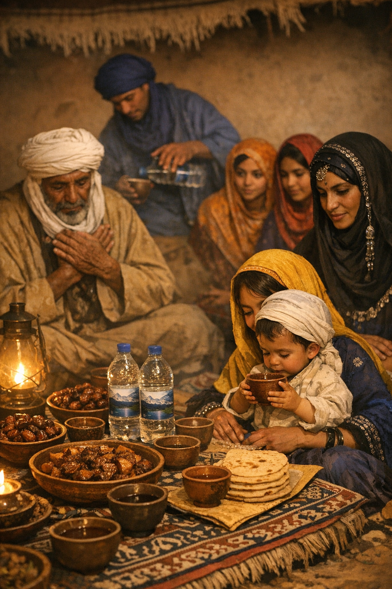 Еда была простой, сытной и в своей основе знакомой, все было понятно без лишних слов: мясо, лепешка, финик. Малыш, получив наконец в свои маленькие руки собственную пиалу с заветной водой, сначала долго и со всей серьезностью мирового судьи смотрел внутрь, на освещенную пламенем масляной лампы дрожащую, играющую бликами поверхность, потом незаметно, украдкой, прикрывшись движением, будто потянувшись к лепешке, понюхал ее. Не уловив ни единого запаха, сделал первый, крошечный, осторожный, пробный глоток и замер, прислушиваясь к новым ощущениям.