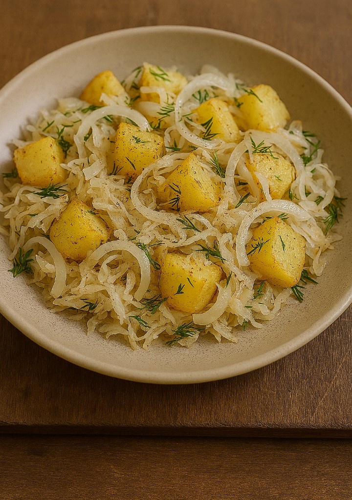 Салат из квашеной капусты, картошки и лука от бабы Вари.