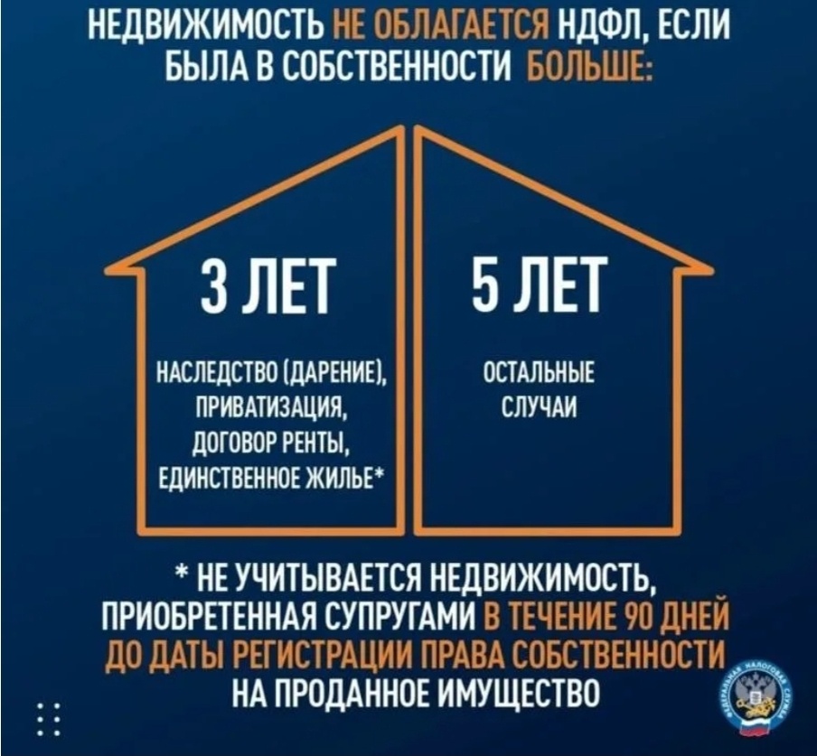 По Налоговому кодексу РФ, минимальный срок владения недвижимостью для освобождения от уплаты НДФЛ при её продаже составляет: