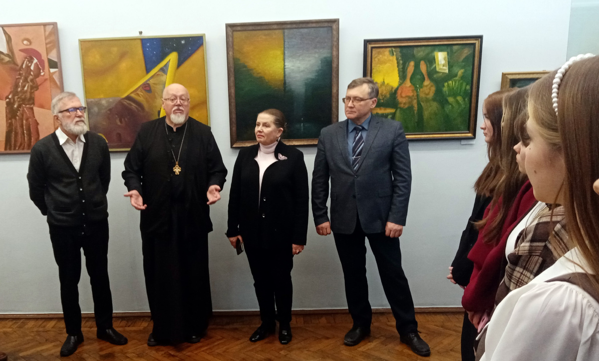 Вчера, 5 февраля, в Зале искусств ЮУрГУ при большом скоплении студентов и любителей живописи состоялось открытие выставки «Ген совершенства». В экспозиции – работы живописцев Владимира Мишина и Александра Александрова, скульптора Сергея Теличко. Открывала выставку доктор исторических наук профессор Наталья Парфентьева, а благословил открытие отец Игорь Шестаков, секретарь Челябинской епархии. Дело в том, что Александр Александров, который ушёл из жизни в минувшем году, много лет служил в храме Свято-Троицкого храма, где протоирей Игорь Шестаков является настоятелем. Трудно на одной экспозиции совместить профессиональные работы Мишина, картины любителя отца Александра и скульптуры Теличко. Но устроителям кафедры теологии, культуры и искусства, это удалось. А в пресс-релизе искусствовед кафедры Анатолий Разуев весьма философски попытался примирить стиль ученика Владимира Мишина отца Александра с работами своего учителя: «Стилистически его живописное наследие можно отнести к экспрессиониз