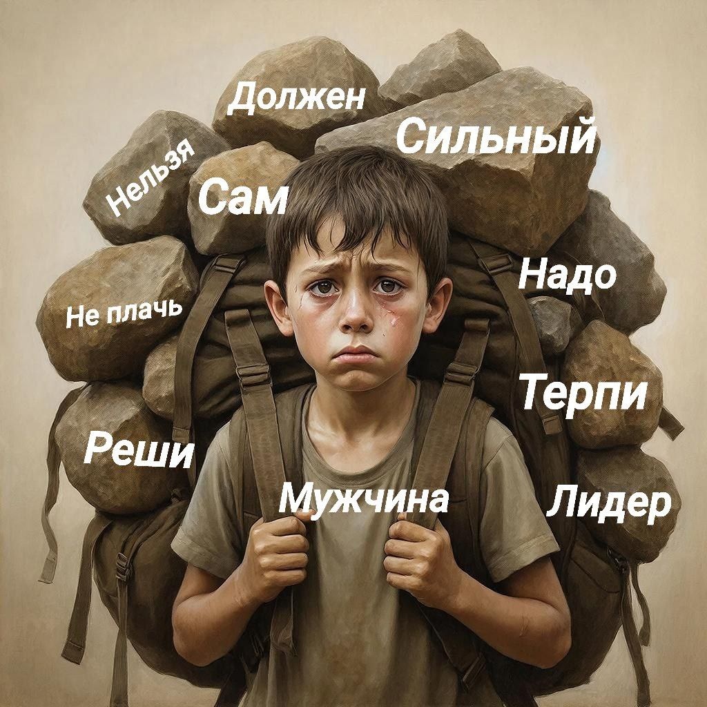 🤎🤎🤎🤎🤎🤎 🤎🤎🤎🤎🤎🤎🤎 🤎🤎🤎🤎🤎🤎 На канале в основном женская аудитория, но есть и мужчины, которых я не могу обойти вниманием. Да и девочкам этот пост будет полезен. Мальчикам тоже не легко.Когда в семье рождается мальчик он сразу становится должен. На него автоматически навешивают ожидания. Ведь это будущий мужчина. А мужчина должен быть сильным, смелым, активным, должен решать проблемы, брать всё на себя. Мужчине не разрешают быть слабым - это стыдно. Нельзя плакать. "Не плачь! Мужчины не плачут!"Поэтому у мужчин , у очень многих, подавлены эмоции. Нет контакта с чувствами, нет контакта с телом. Отсюда идёт распространенный миф о том, что мужчины менее эмоциональны, чем женщины. У мужчин просто нет безопасного пространства для проявления своих эмоций, а часто даже нет понимания что именно они чувствуют и как это можно прожить. На самом деле мужчинам доступен весь спектр эмоций, так же как и женщинам. Но мужчины либо полавляют их, либо держат под контролем. Мужчин