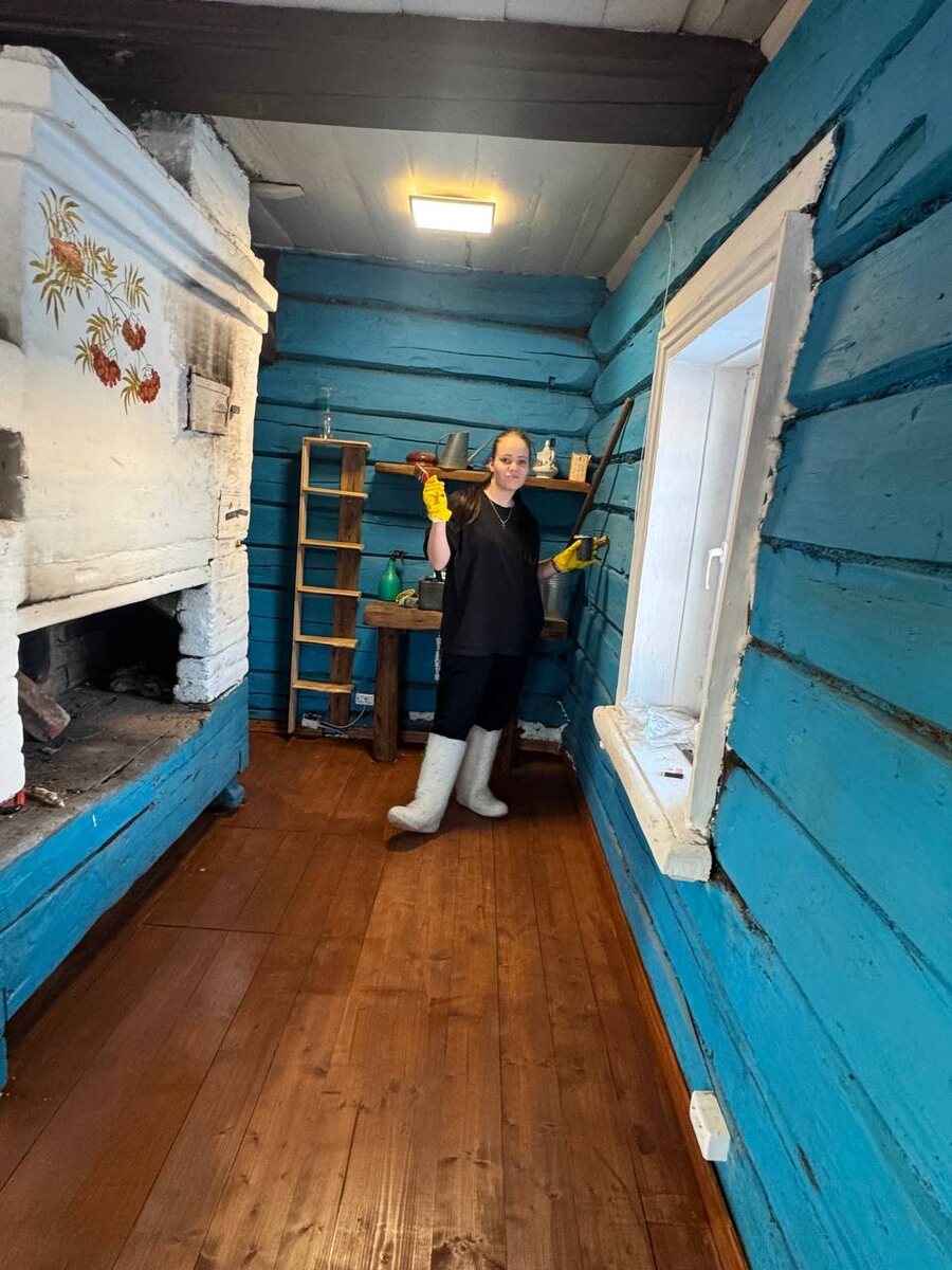 ! Не все пошло по плану. Рассчитывала, что цвет пола получится светлее, а вышел яркий, густой, насыщенный. Так часто бывает: смотришь на образец, выбираешь его, а на свежей половой доске все это смотрится темнее на несколько тонов. От сорта дерева тоже финальный цвет зависит. Пробную выкраску делать не стала из-за времени. Нужно ждать пока высохнет, отапливать постоянно, снова выбирать.. 🤷♀️Что вышло, то вышло. Косяков хватает, особенно со шлифовкой🤦♀️. В некоторых местах моя шлифовка выглядела, как будто человек после бурного корпоратива пытался вывести на сугробе слова любви🤪… Сама удивлена. Все меня утешают и говорят, не переживай, это же деревня! Но, сами знаете, хочется как лучше😉 О хорошем. Вчера печь растопила, как мартен. С учетом нового пола, в избе стало жарко, это радует. Вчера финально закрасили все косяки и сегодня, после полного высыхания, можно будет оценить результат и потихоньку наводить порядок👌 Ps Про таинственного зверя, который движется по пути к на