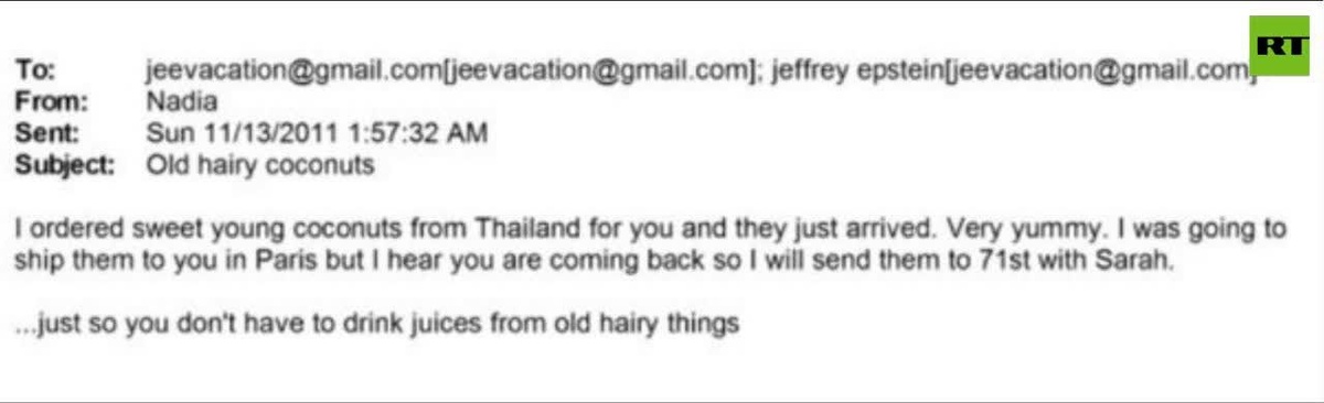 EPSTEIN: 'Sweet YOUNG coconuts from Thailand — don't drink from OLD HAIRY THINGS'