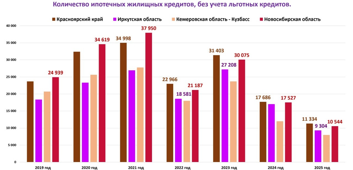 📉 За 2 года число ипотечных кредитов по рыночным ставкам снизилось в Новосибирской области в 2,85 раза
