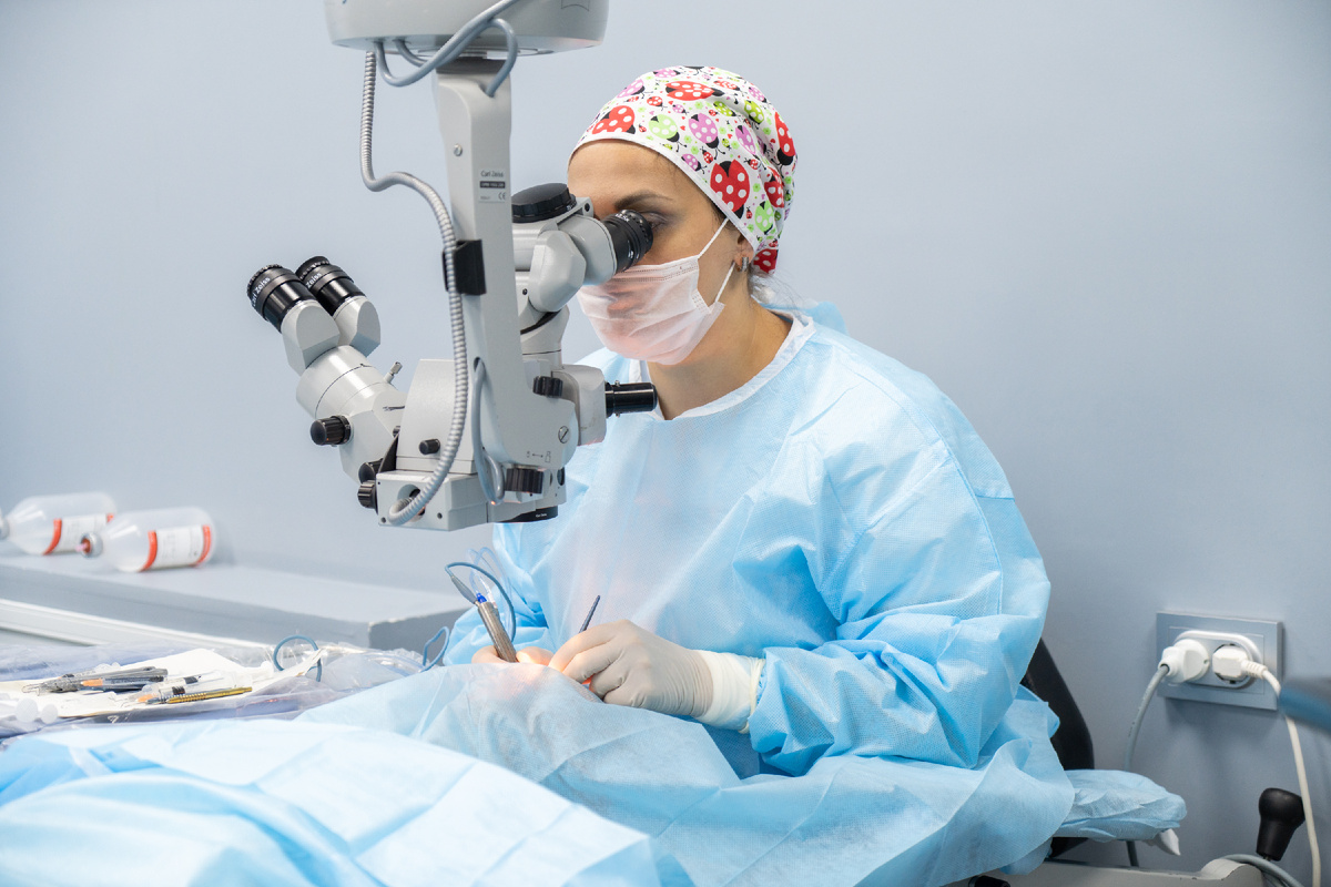 Операцию проводят под местной анестезией. Уколов в глаз не делают — закапывают обезболивающие капли. Боли нет. Совсем. Максимум — ощущение прикосновений и лёгкого давления.