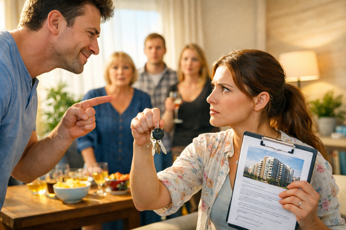 На следующий день муж пытался вести себя так, будто ничего не произошло, но взгляд жены был холодным и уверенным. Она начала планировать своё будущее, приглашая друзей на новый квартирный праздник, о котором он не имел ни малейшего понятия.