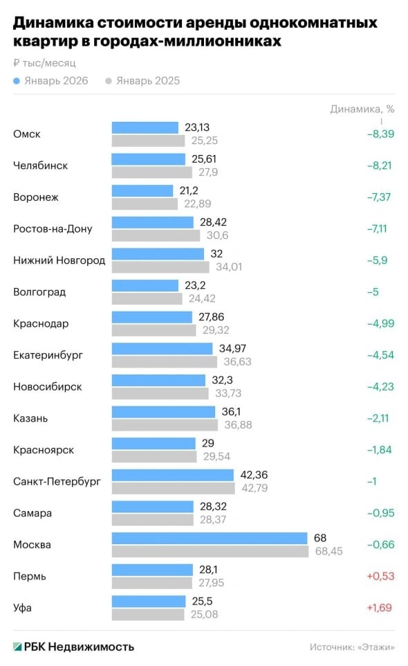 πͺ ΠΡΠ΅Π½Π΄Π° ΠΎΠ΄Π½ΠΎΠΊΠΎΠΌΠ½Π°ΡΠ½ΡΡ ΠΊΠ²Π°ΡΡΠΈΡ Π·Π° Π³ΠΎΠ΄ ΡΠ½ΠΈΠ·ΠΈΠ»Π°ΡΡ Π² 14 ΠΈΠ· 16 Π³ΠΎΡΠΎΠ΄ΠΎΠ²-ΠΌΠΈΠ»Π»ΠΈΠΎΠ½Π½ΠΈΠΊΠΎΠ² β Π ΠΠ