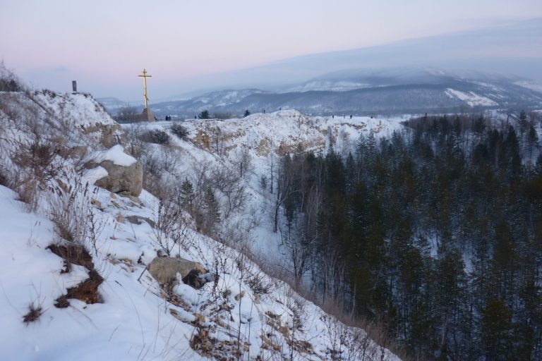 Еще одна тропа, самая потаенная и красивая, проходит через лесок в чаше кургана и так же выводит к установленному наверху кресту, на котором по вечерам включают подсветку. Третья тропа — экстремальная, по узкому скальному гребню. Зимой там лучше не ходить, опасно. А когда стает снег, попробуйте преодолеть этот путь, ненадолго почувствовав себя горным восходителем.