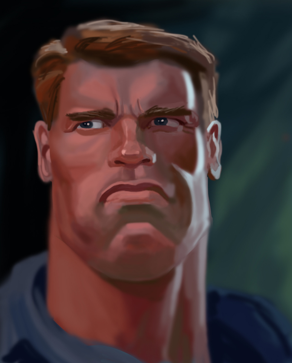 Оказывается, я уже рисовал Шварца! Это было в 2023 году, не так давно. Вот такой вариант Не помню из какого фильма взял, но прошлый свой шарж я рисовал с "Коммандо".