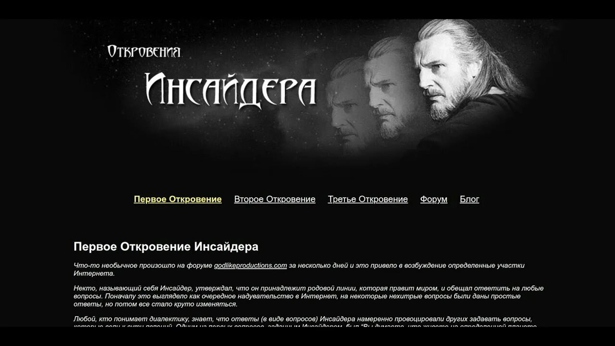 Предыдущая статья об откровениях Инсайдера была написана в 2022 году, но до сих пор вы пишите к ней комментарии. Перечитать можно здесь. Там некий человек, называющий себя представителем элитной семьи, рассказывает, как они управляют миром. Это откровение появилось в сети в 2005 году.