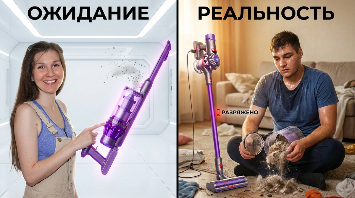 Реклама твердила: «Купи вертикальный беспроводной пылесос! Это свобода! Это мощь! Это уборка одной рукой в танце!». И я сломался. Я выделил 30 000 рублей (немалые деньги, согласитесь) и купил одну из самых популярных моделей на рынке. С кучей насадок, лазером для подсветки пыли и обещанием «ураганной мощности».