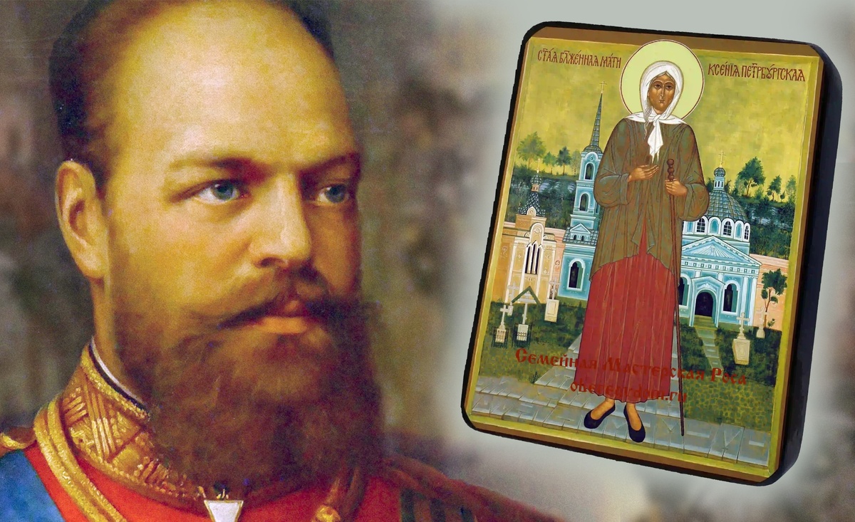 блаженной Ксении Петербургской напомню вам о том, какую роль сыграла св. Ксения в жизни Царской семьи. Это событие долгое время хранилось в семье втайне. В 1872 году цесаревич Александр Александрович (будущий император Александр III) заболел тифом в тяжелой форме. Его жизнь была в серьезной опасности. Дни и ночи при больном находились врачи, но во дворце чувствовалось ожидание беды. Тогда один камердинер обратился к супруге цасаревича Марии Федоровне, посоветовав молиться Ксении Петербургской. Святая еще не была канонизирована Русской Православной Церковью, но верующими из уст в уста передавались истории о Ксенюшке, спасающей в минуты отчаяния. Ночью, сидя у постели больного мужа, Мария Федоровна долго молилась и задремала и увидела перед собой пожилую женщину в красной кофте и зеленой юбке. Она успокоила Марию Федоровну и сказала, что цесаревич выздоровеет. Также предрекла, что вскоре у них родится дочка. Священник Димитрий Булгаковский описал случившееся кратко: "Благочестивая же