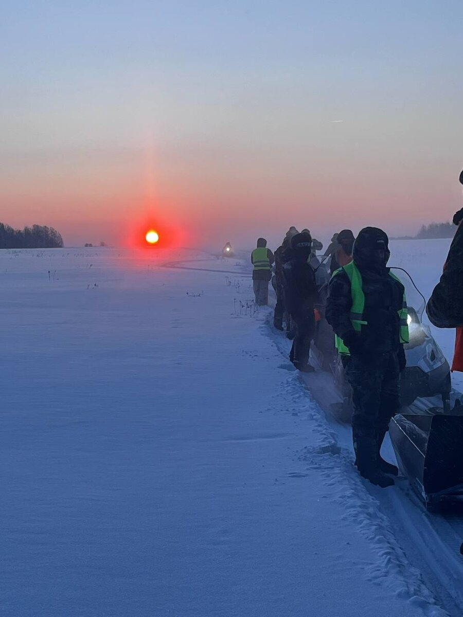 Рано утром выдвинулись в лес — как полагается, при первом свете. Морозный воздух и красивейший рассвет провожали нашу группу, придали бодрости перед долгим переходом. До места оклада нам предстояло пройти около 9 км по непростому маршруту: глубокие овраги, переправа через реку и узкие буранки, где не каждый снегоход проедет. Дошли до обозначенных мест, рассредоточились по засадам и начали охоту. Наш оклад был на стаю — ориентировочно 6–8 серых разбойников, то есть волков. В первом загоне моему соседу повезло — он добыл сразу двух животных. Они прошли мимо меня на расстоянии 50–60 метров; дистанция была большая, и я сознательно их пропустил, чтобы дать шанс другим номерам. После первых двух трофеев раздались ещё выстрелы — в результате в первом загоне добавилась ещё одна зверь. Второй оклад проходил спокойнее и длился дольше: загонщики шли медленно и плотно, чтобы не упустить животных. Это тоже дало результат — ещё одна добытая особь. Итог охоты: четыре волка. Вернулся домой уже позд