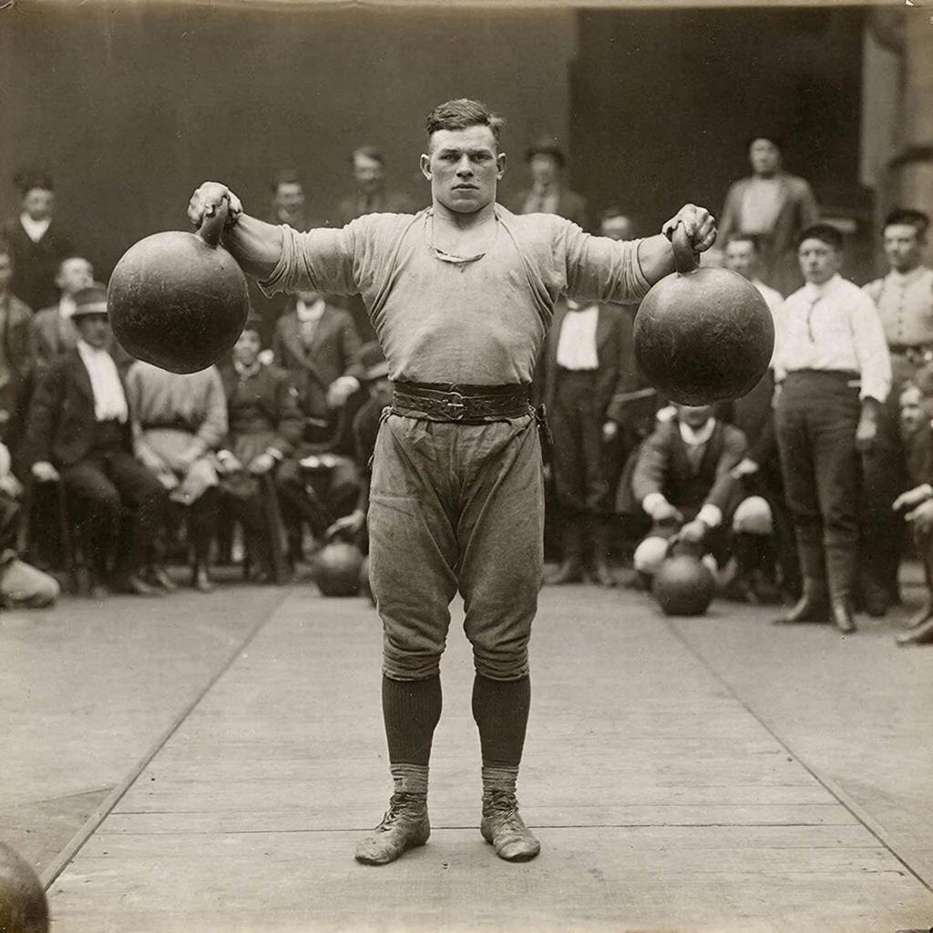 Чемпион мира по борьбе Иван Шемякин три раза подпрыгивал на одной ноге, держа в руках над головой семипудовую штангу. Знаменитый И. В. Лебедев (дядя Ваня) выжимал правой рукой 72 кг и двумя руками 95 кг, стоя на одной ноге.
