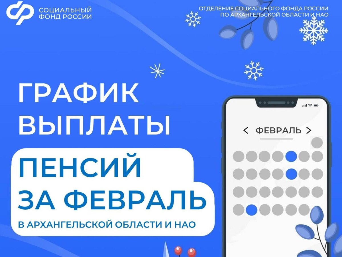 Выплаты перенесут на более ранние сроки из-за выходных дней, доставка через почтовые отделения пройдет по обычному графику. В Архангельской области и Ненецком автономном округе пенсии через кредитные организации перечисляются ежемесячно 7, 14 и 24 числа. Для каждого пенсионера дата выплаты закреплена индивидуально и приходится на один из этих дней. Если установленная дата выплаты совпадает с выходным или праздничным днем, региональное отделение Социального фонда России перечисляет средства заранее. В феврале пенсии через банки будут выплачиваться: Доставка пенсий через отделения «Почты России» в феврале пройдет без изменений — с 3 по 22 февраля включительно.