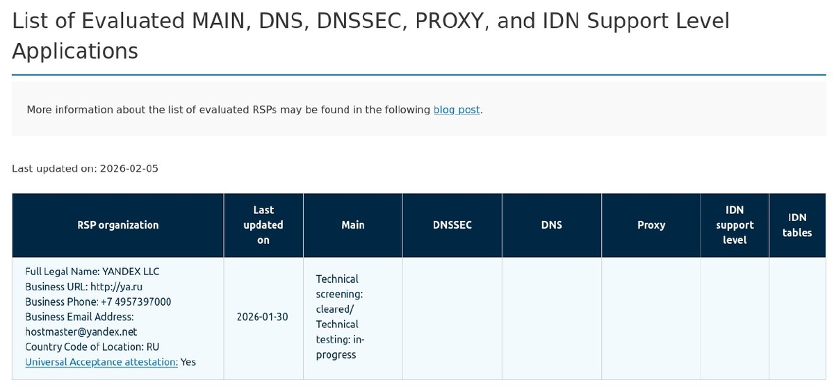 ⚡ ICANN предварительно одобрила «Яндекс» для программы поставщиков реестровых услуг Registry Service Providers (RSP