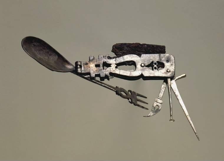 э. Найден на севере Англии (точное место находки неизвестно). Материал — серебро, железо. Включает нож, ложку, вилку, шило(?), мини-шпатель и «крючок». Археологи считают, что мини-шпатель мог помогать доставать соус из бутылок с узким горлышком. «Крючок», возможно, использовался для извлечения устриц из раковины или служил зубочисткой Римские складные ножи не редкость, но большинство из них сделаны из бронзы и имеют меньше деталей. Перед нами роскошная версия такого «дорожного» ножа, заменяющая целый набор столовых приборов, и поэтому, вероятно, он принадлежал состоятельному человеку, который много путешествовал. На 4 фото — современная реплика этого ножа. Надо заметить, что этот нож засветился уже везде, где можно, но в следующем посте будет еще один такой римский «швейцарский нож», но уже не с 6, а с 7 инструментами и почему-то намного менее известный. Терра инкогнита | Неизвестная земля