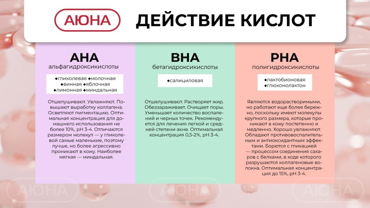 ) ❓Что это: водорастворимые кислоты, работающие преимущественно на поверхности кожи. Основные представители: * гликолевая; * молочная; * лимонная; * яблочная; * винная. Для какого типа кожи: нормальная, сухая, тусклая, с признаками старения, неравномерным тоном. Концентрация в косметике: обычно 5–10 %, pH 3–4. 〽️BHA‑кислоты (бета‑гидроксикислоты) ❓Что это: жирорастворимые кислоты, способные проникать в поры. Основной представитель: салициловая кислота Для какого типа кожи: жирная, комбинированная, склонная к акне и закупоренным порам. Концентрация в косметике: обычно 0,5–2 %, pH 3–4. Ключевые отличия: * AHA — для поверхностного отшелушивания и омоложения; * BHA — для глубокого очищения пор и борьбы с воспалениями. #2026 #cosmetology #косметология #косметолог #уходзакожей #кислоты #aha #bha #сияниекожи #увлажнениеипитание #кожалица #пилинг #всесезонныйпилинг