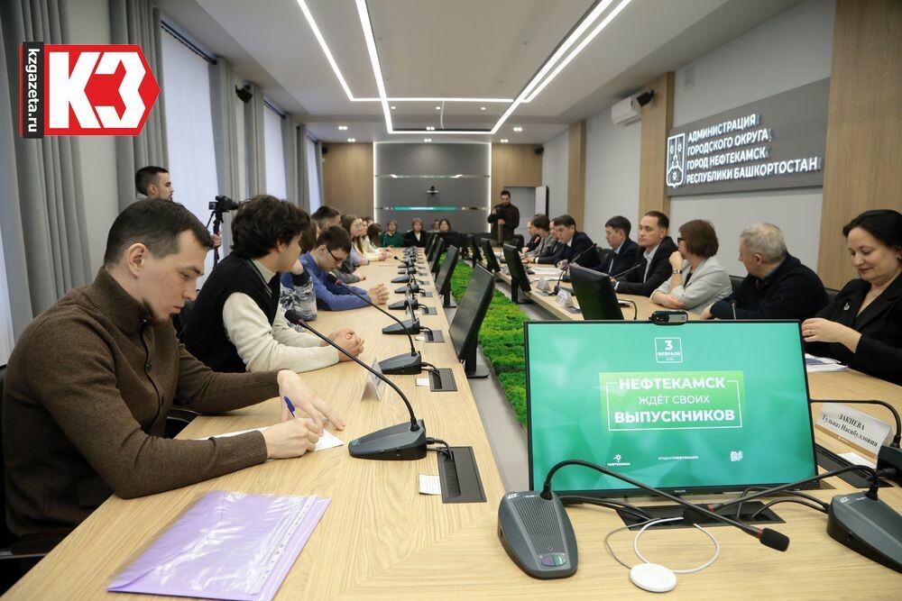 Во вторник, 3 февраля, состоялась встреча студентов-нефтекамцев с главой администрации и руководителями предприятий города. Такие встречи организуются в Нефтекамске не первый год с целью показать будущим молодым специалистам перспективы работы в родном городе и помочь им с трудоустройством. Автор: Миляуша СИРАЗЕТДИНОВА. В зале совещаний собрались студенты, которые получают высшее образование в вузах республики и страны по самым разным направлениям: предпринимательство, туризм, экономика, здравоохранение, информационная безопасность, юриспруденция, технические специальности и другим. Например, нефтекамка Азалина Шангараева учится в Казани, в институте управления экономики и финансов Казанского федерального университета по специальности «Государственное муниципальное управление». На встречу в городскую администрацию пришла с вопросами: «Хотела узнать, какие направления в городе развиваются сейчас, где можно устроиться в нашем городе с моей специальностью, на каких условиях? Пока учусь на