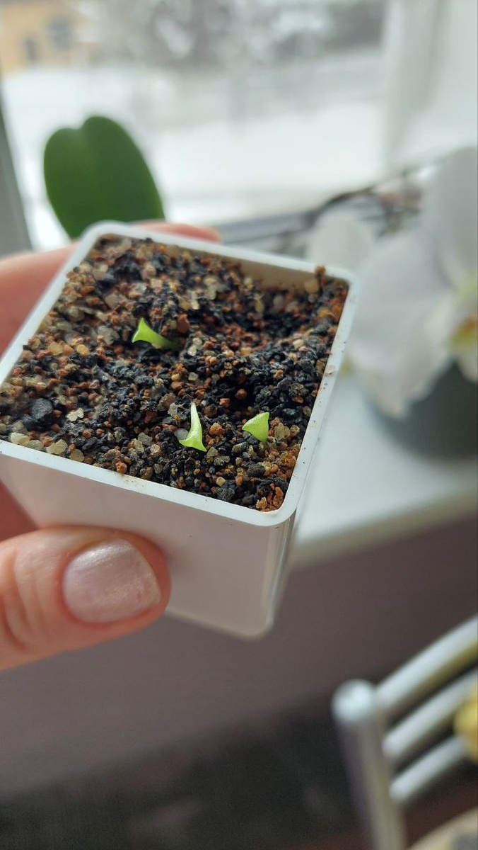 " Из пяти семян проросли 3. Думаю это достижение, учитывая, что это растение любит тепло, а у меня дома сейчас максимум 19 градусов. Буду наблюдать, что дальше. В прошлом году проращивала "живые камни", но они погибли быстро. Надеюсь хвостики выживут!