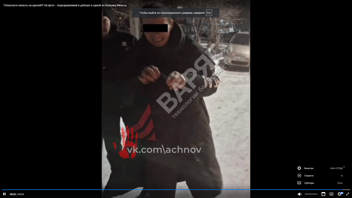 Задержан подозреваемый в дебоше в одной из больниц Миасса. Человек вломился в приемный покой. Увидев медиков, по предварительным данным, начал на них кидаться. Врачам ничего не оставалось, как вызвать охрану. "АЧН" от компании "Варяг" стало известно, что им вызов поступал вечером 5 февраля с улицы Ильменской. По их данным, предполагаемый хулиган был нетрезв. При задержании пытался оказать сопротивление. Что нужно было человеку в больнице, устанавливается. Это предстоит выяснить полиции. Как и то, что за награда была при задержанном. Как только он увидел охрану тут же выбросил звезду Героя России. Она, предположительно, является фальшивой.