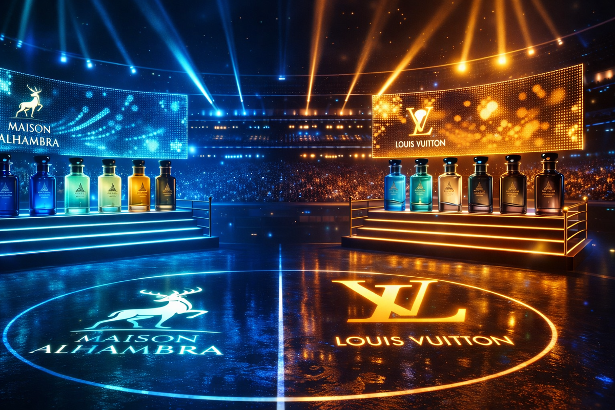 Maison Alhambra — молодой и более доступный игрок из ОАЭ, выросший из семейного бренда Lattafa, который работает с 1980‑х годов и известен ориентальными ароматами. В дубайских лабораториях Maison Alhambra соединяет насыщенные восточные ноты (масла, смолы, амбра) с трендами западной парфюмерии, и в 2023–2024 годах так появилась линейка Jean Lowe, вдохновленная Louis Vuitton. В ней главный акцент сделан на сильной стойкости и доступной цене: вы получаете похожую парфюмерную «ДНК» LV с приближением к 85–95% по ощущениям многих энтузиастов, но в более простом, повседневном и носибельном варианте.