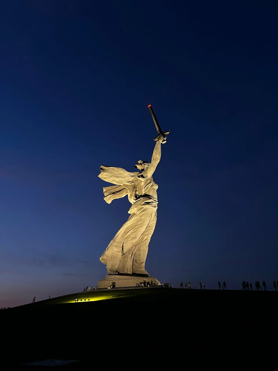 Введение: Монумент, Сделанный из Эмоции В мире есть много статуй, но есть те, что не просто стоят, а кричат. “Родина-мать зовет!” — это не просто статуя. Это пятидесятиметровый каменный сгусток ярости, скорби и несгибаемой воли. Он возвышается над Волгоградом (Сталинградом), как вечный страж, высеченный из бетона и стали, который смотрит прямо в душу каждому, кто осмелится взглянуть снизу вверх. Мы не будем перечислять его технические характеристики. Мы поговорим о том, почему он такой, и как этот колосс стал воплощением самого тяжелого момента в истории страны. Статуя не могла быть тихой или мирной. Ее рождение было прямым следствием самого кровопролитного сражения XX века. Сторителлинг (Эмоциональное Погружение): Представьте, что вы стоите на вершине Мамаева кургана в 1945 году. Это была самая изрытая, исковерканная земля в мире — поле, где смерть была единственным постоянным жителем. Любой памятник, поставленный здесь, должен был быть соразмерен масштабу жертвы. Скульптор Евгений Ву