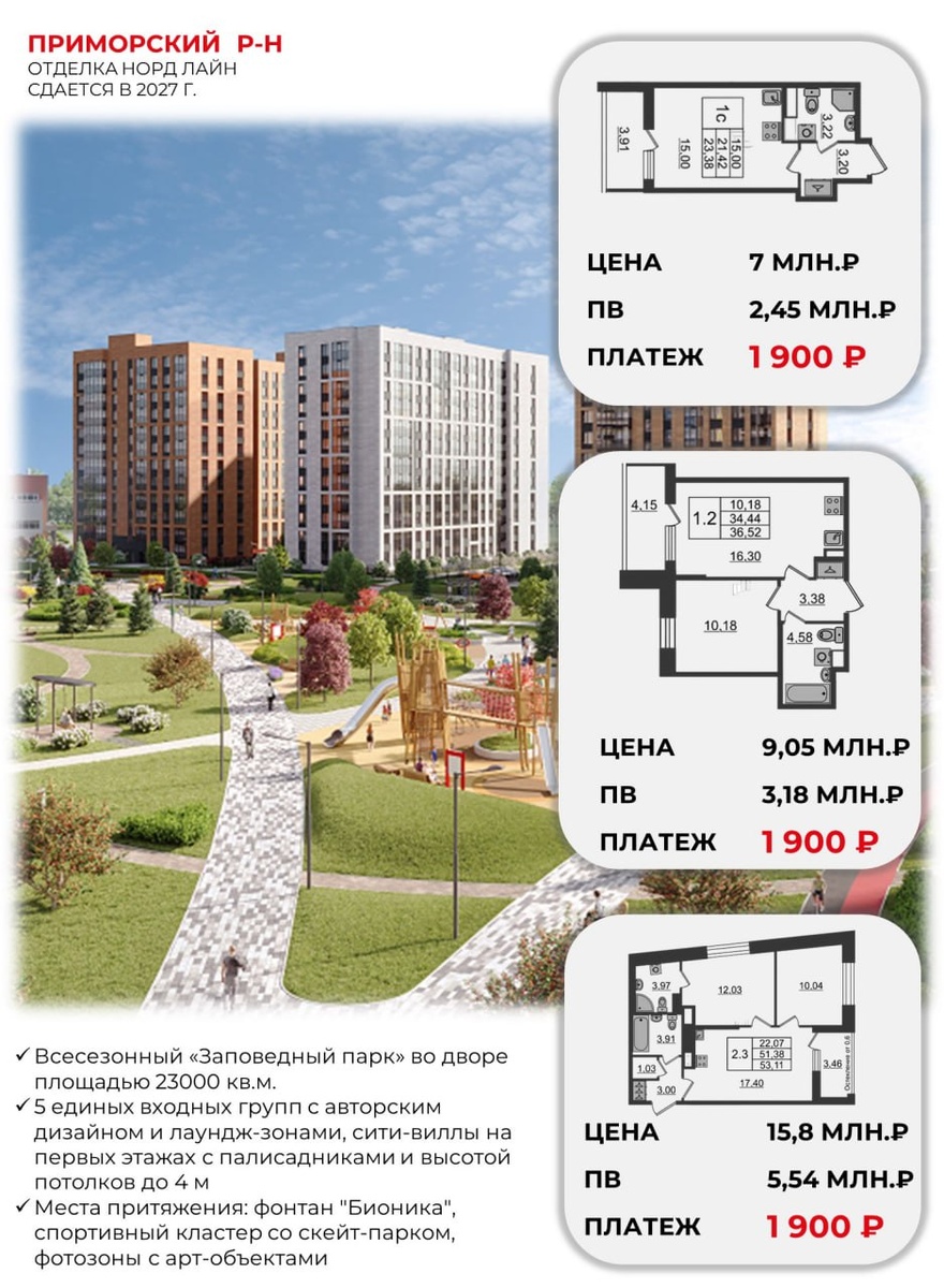 И многое другое. Например, вот такое предложение от одного из хороших застройщиков Петербурга