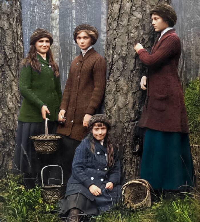 Великие княжны Ольга, Татьяна, Мария и Анастасия Романовы собирают грибы. #Романовы Ещё больше фотографий: ____________ Telegram | ВК | MAX | Дзен | Пикабу