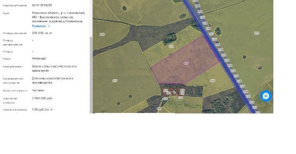 разрешенного использования – для сельскохозяйственного производства, площадью 298000 кв.м, местоположение - Рязанская область, р-н Сараевский, МО – Высоковское сельское поселение, в районе д Смирновка, из земель СПК клх. «Красный Октябрь». Канал: Госземля Рязанская область Область: обл Рязанская р-н Сараевский Район: МО – Высоковское сельское поселение Населенный пункт: в районе д Смирновка, из земель СПК клх. «Красный Октябрь» Локация: Смотреть на карте ВРИ: Обеспечение сельскохозяйственного производства Кадастровый номер: 62:17:0010218:437 Кадастровая стоимость: - Вид сделки: Продажа Площадь: 298000 м² Начальная цена: 1226568.00 руб. Дата завершения: 17.03.2026 Подробнее: ГИС ТОРГИ #госземля #земляотгосударства #земля #земельныйучасток #земельныеторги #торги #аукцион #продажаземли #продажа #рязанскаяобласть
