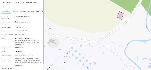 Название: Площадью 1594 кв.м., кадастровый номер 47:16:0606001:554, виды разрешенного использования: для ведения личного подсобного